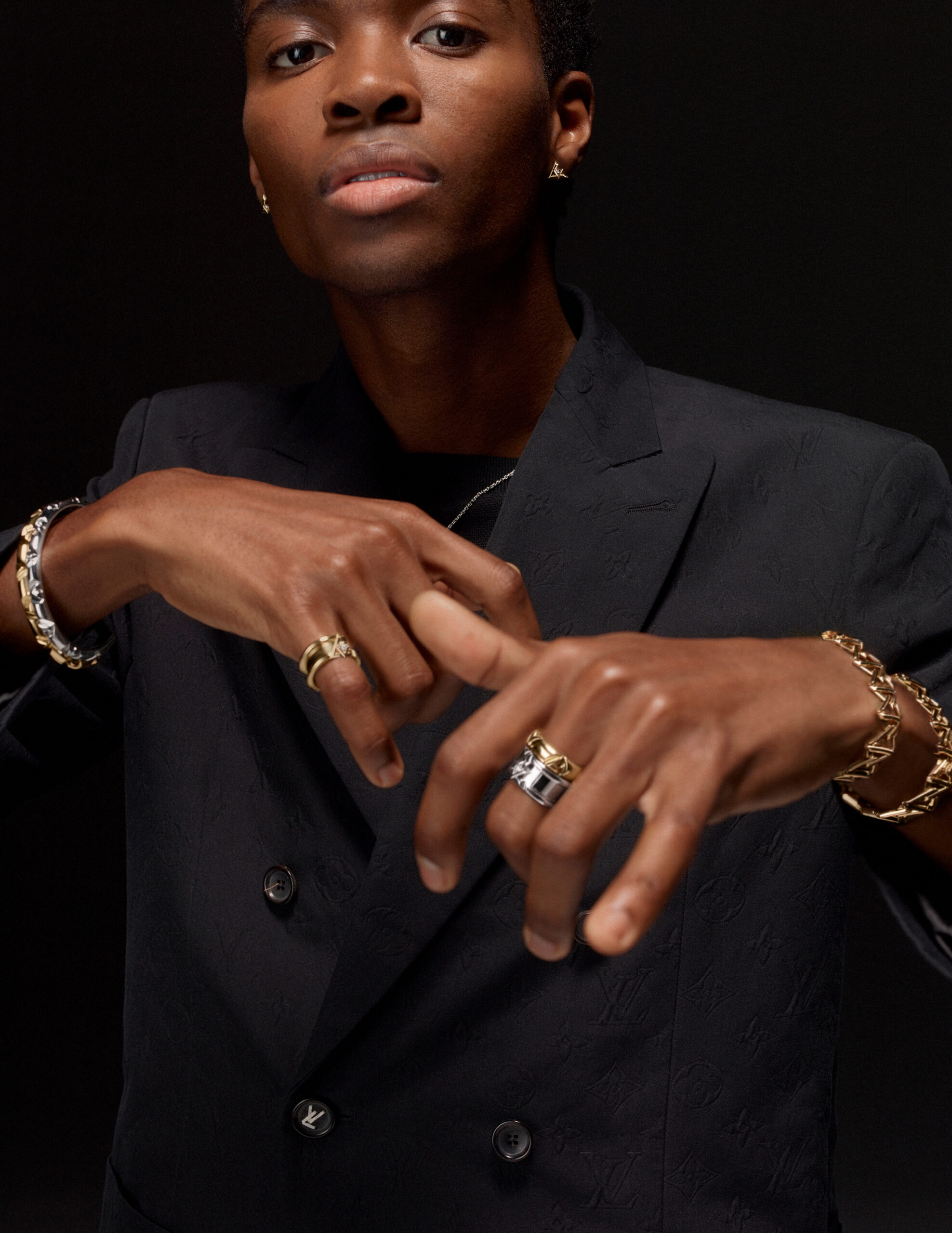 On each piece of jewellery, Louis Vuitton’s craftsmanship gives way to a conversation between precise, clean lines and soft, smooth contours. Overlaying the graphic power of the leitmotif and the bold statement of manifesto, barring no combinations, this decidedly unisex collection draws on the House’s cherished abstract art forms to find its energy, drum its tempo, establish its cadence and refresh its beat.