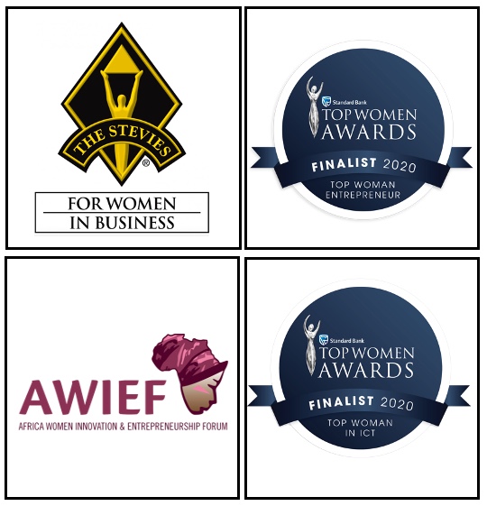 Jackie Aylett has been nominated for two Stevie Awards, is a finalist in two Standard Bank Top Women Awards and received a nomination for an award presented by AWIEF (African Women Innovation and Entrepreneurship Forum)
